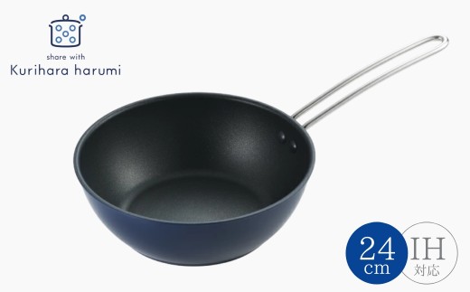 栗原はるみ 深型フライパン 24cm IH対応 ネイビー ワイヤーハン…