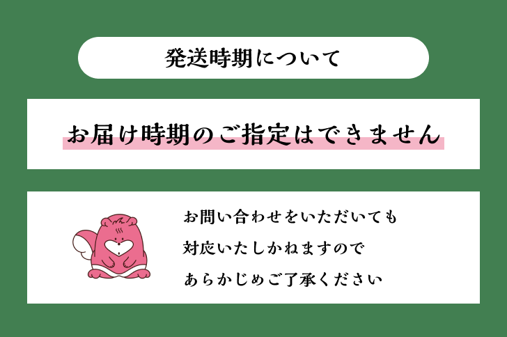 | 発送期日 | 10月中旬より順次、毎月発送いたします。 |