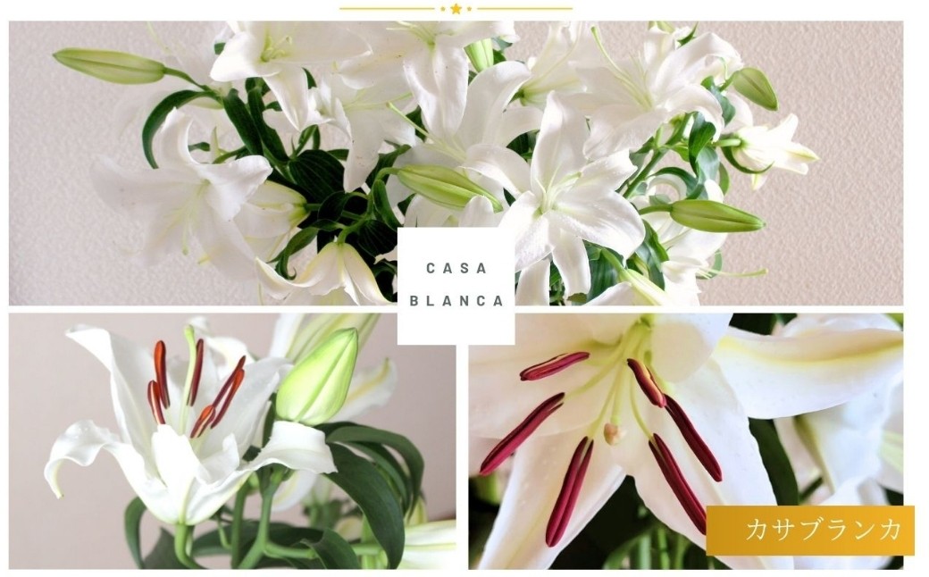 昨年からこの時期に購入しています。長く大ぶりのカサブランカが1本に数輪ついてて、夏の暑さに負けず10日くらいかけてすべて開花しました。部屋の中が華やかでものすごくぜいたくな気分を感じられる毎日でした。