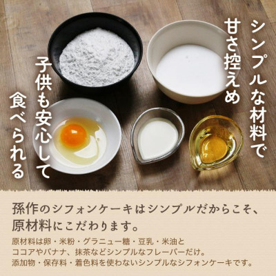 | 容量 | ■お礼品の内容について ・シフォンケーキ(プレーン、ココア、新之助、バナナ、抹茶、ミルクティ)[6種類×2カット] 製造地:新潟県 刈羽村 ■原材料:お礼品に記載 ※アレルギー物質などの表示につきましては、お礼品に記載しています。 |