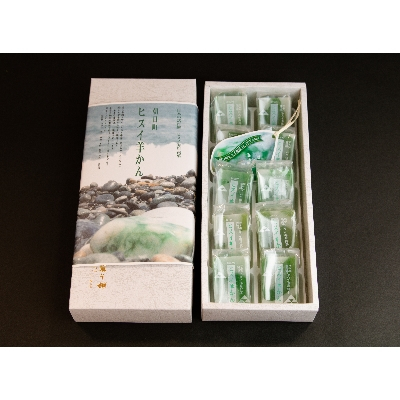 ヒスイ原石を採取できる珍しい海岸が富山県朝日町にあります。その朝日町で日本の国石にも選定されているヒスイをイメージに、秘伝の製法で作製した和のお菓子「ヒスイ羊かん」をご堪能ください。