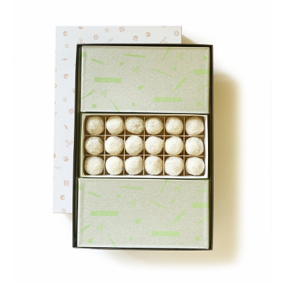 立山の雪に思いを馳せ、家持の詩に因んで創られたのが「とこなつ」です。希少な白小豆餡を求肥で包み和三盆糖を振り掛けた、明治期より作り続けているお菓子です。