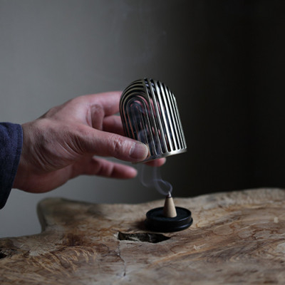 鳥籠のようなアーチ型のお香たて。伝統的な香炉でも用いられる、透かしの技法で仕上げました。心安らぐ和の美意識を残しつつ、現代のライフスタイルにも馴染むデザインです。お好みのお香を焚いて、格子文様の隙間からゆらゆらと立ちのぼる煙をお楽しみください。