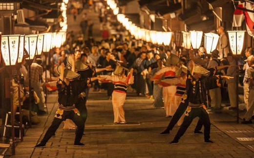 富山県を代表する伝統行事「おわら風の盆」をモチーフにした絵柄を、牛乳瓶にあしらいました。