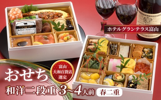 この自治体のポイントについてチョイス公式ポイント交換対象 ホテルグランテラス富山の春二重おせちで新年を彩る <富山大和百貨店選定>ホテルグランテラス富山 洋中二段重 春二重おせち 3~4人前 12月31日お届け