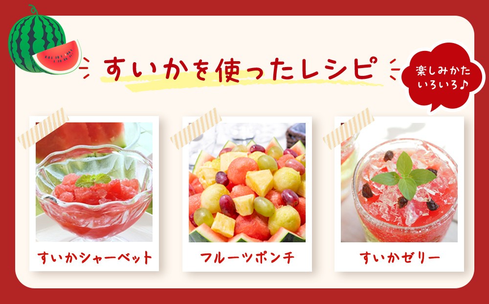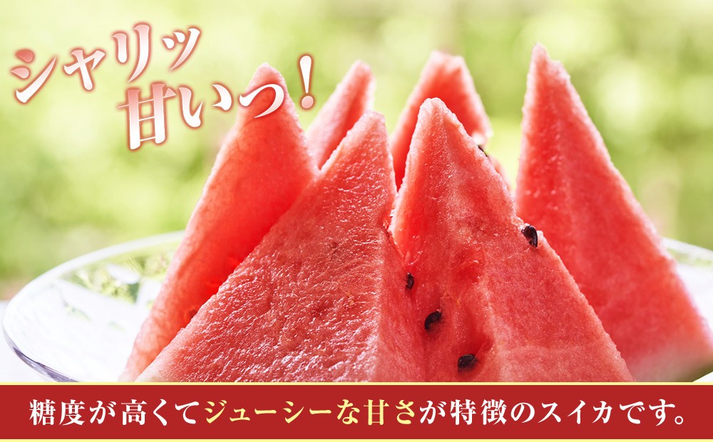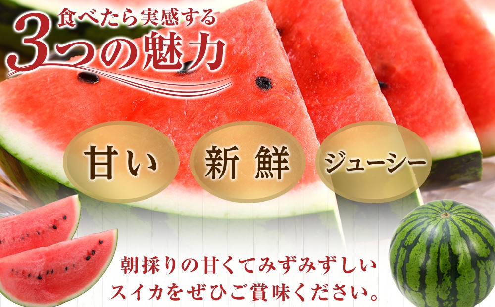 重量は約7〜8kg、糖度が高く、ジューシーな甘さが特徴です。農家の方々が丹精込めて育てたスイカをぜひお楽しみください。