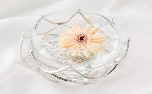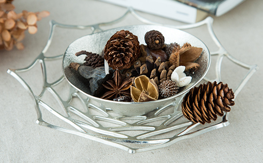 ダリアの花をモチーフにした、やわらかい錫の特徴を最大限に生かした商品です。