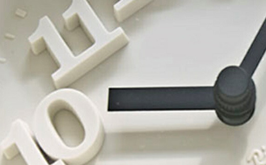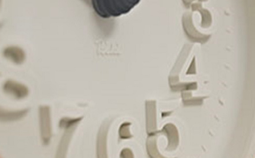 この「小さな時計」の最大の特徴は、立体的な文字にあります。一体成型により、凸状に浮かび上がったかたちが、美しい陰影を作り出しています。