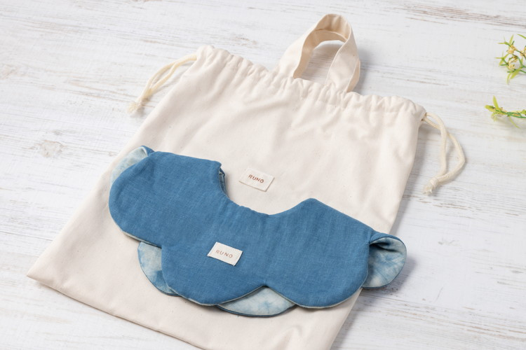 魚津市鹿熊で天然藍染め(むら・淡藍染め)されたダブルガーゼをそれぞれ両面に使用しています。