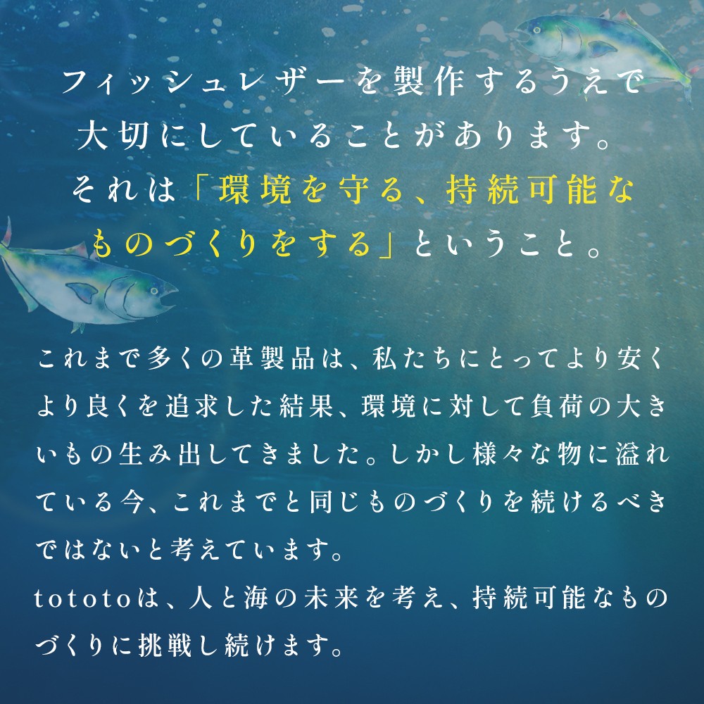 ※フィッシュレザーに曲がった線が見られる場合がございますが【側線】というフィッシュレザーならではの特徴になります。鱗模様も側線も一つとして同じ物はありません。フィッシュレザーの個性としてお楽しみください。