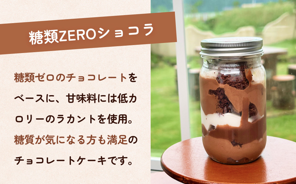 糖類ZEROショコラについて:糖類ZEROのチョコレートをベースに、甘味料は低カロリーのラカントを使い、糖質を気にしている人でも満足のチョコレートケーキです。
