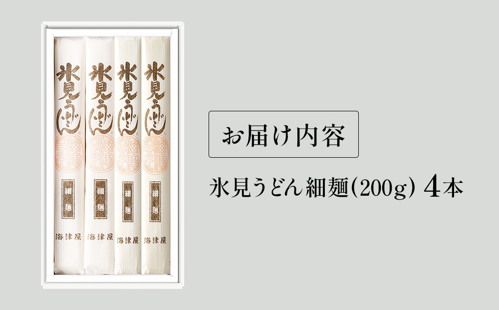 独特の強いコシと粘り、つるりとした食感、喉ごしのよさが自慢 海津屋 氷見うどん細麺4本入り 富山県 氷見市 乾麺 うどん