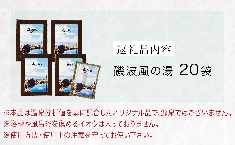 湯磯波風の温泉成分値を基に配合しました。透明な入浴剤です 磯波風の湯 20袋 入浴剤 温泉 再現 日用品 バス用品 温活 富山県 氷見市