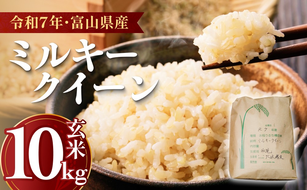 ご飯だけで食べ続けたくなるおいしさ!氷見産ミルキークイーン 令和7年産 富山県産 ミルキークイーン はさがけ米 玄米 10kg 富山県 氷見市 米 ブランド米
