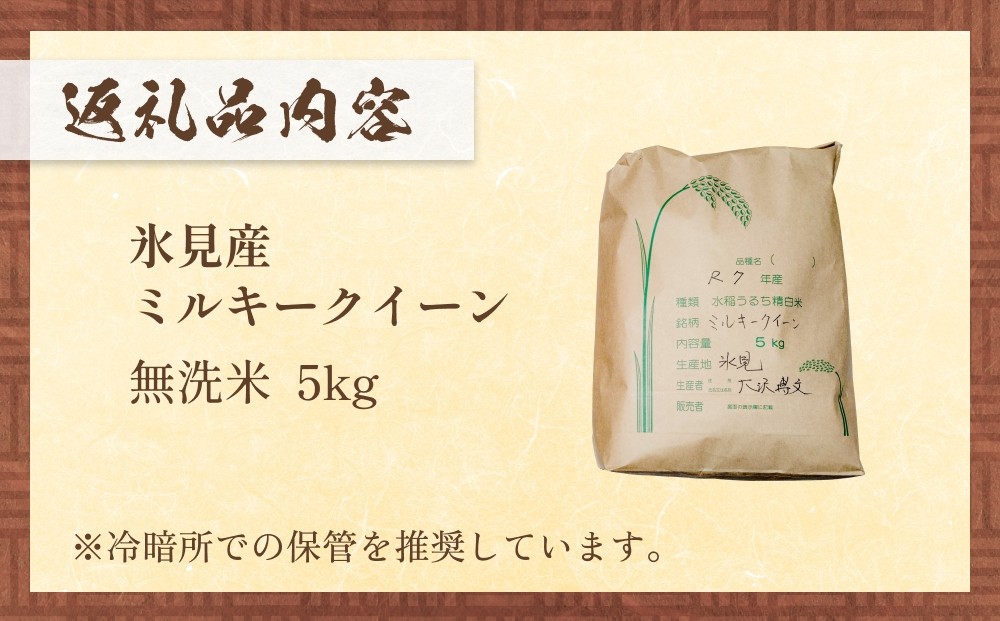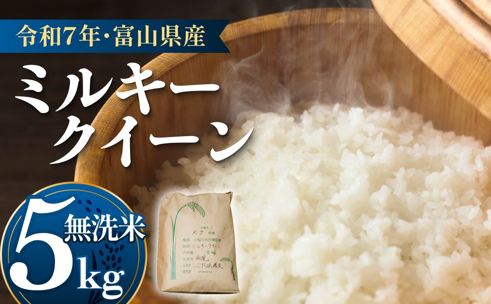 ご飯だけで食べ続けたくなるおいしさ!氷見産ミルキークイーン 令和7年産 富山県産 ミルキークイーン はさがけ米 無洗米 5kg 富山県 氷見市 米 ブランド米
