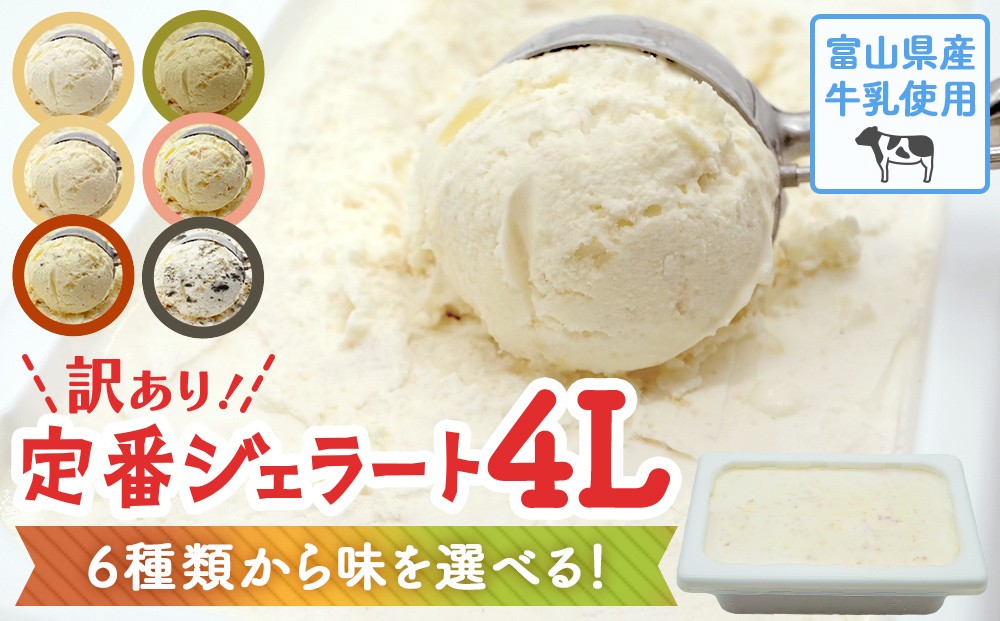 地元で評判のジェラート店!ぜひお召し上がりください 【訳あり】 ジェラート 4L 〈6種類からお好きな味が1つ選べる!〉 いちごのミルフィーユ ピスタチオ ミルク ココナッツ チョコチップ クッキークリーム