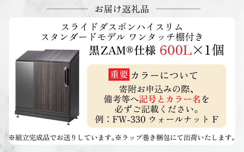 チョイスPayポイントと交換できる品 ゴミの一時置きや、物置としても使えるおしゃれなマルチボックス スライドダスポン ハイスリム スタンダードモデル 600L ワンタッチ棚付き (黒ZAM®仕様) WG-657ホワイトウォールナット
