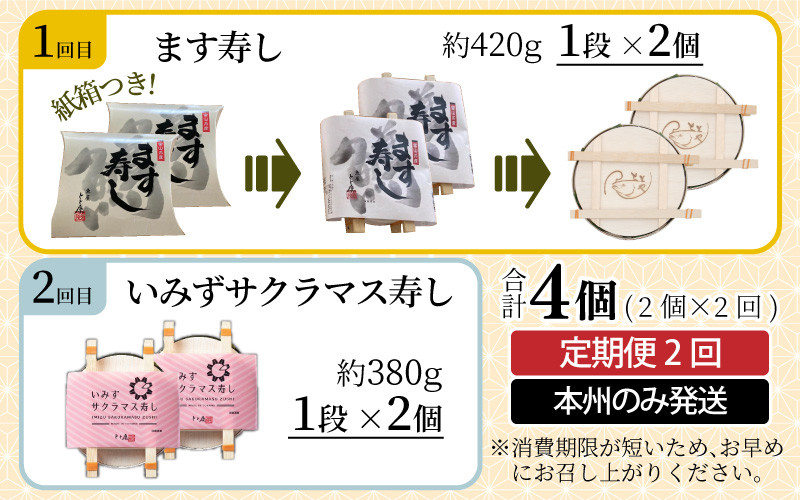 【定期便2ヶ月】ます寿し食べ比べ ます寿しといみずサクラマス…
