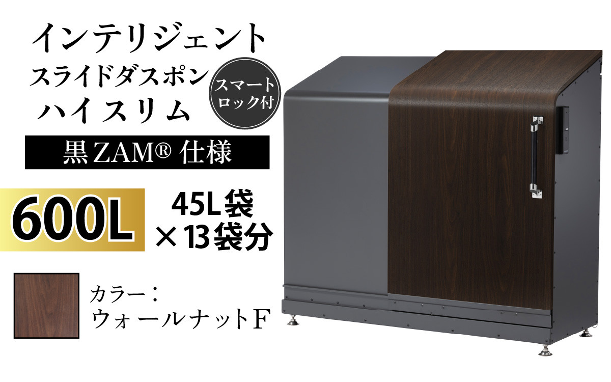 チョイスPayポイントと交換できる品 高いデザイン性と実用性はそのままに、収納物を守る 「スマートロック」機能を搭載。 多機能ボックス インテリジェントダスポン ハイスリム 600L ワンタッチ棚付き (黒ZAM®仕様) 【W-037008_01】 FW-330ウォールナット F