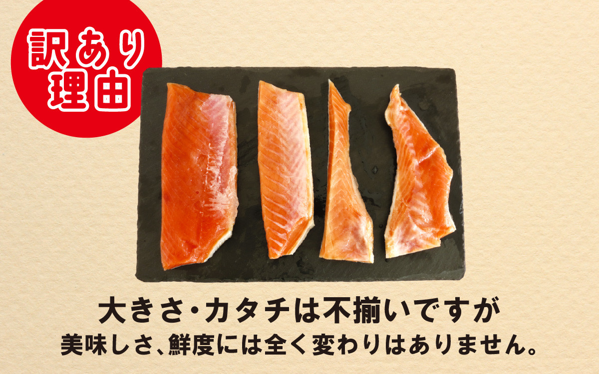 北海道産の秋鮭のハラス切り身を家族で使いやすく個包装 サイズ不揃いの訳あり