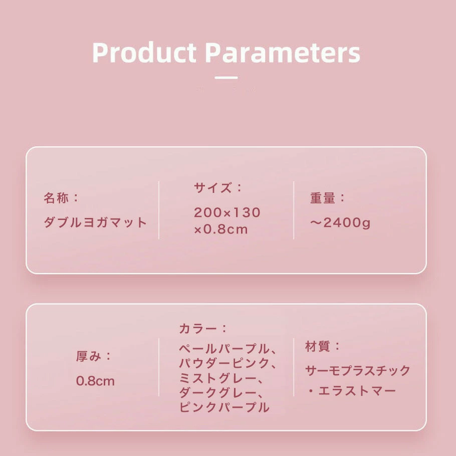幅130cm・長さ200cmの特大サイズで、パートナーヨガや親子ストレッチ、ダンスや筋トレまで幅広く使える二人用ヨガマットです。