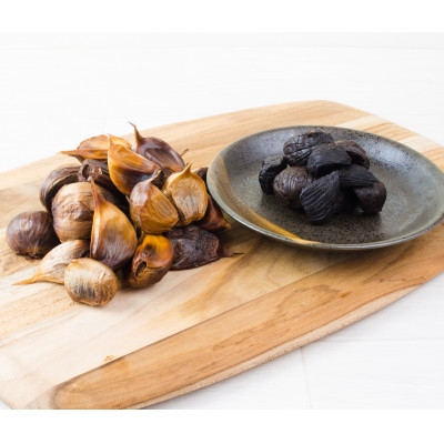 富山県産にんにくを専用の大型製造機を用い、約1,000時間もの時間を掛けて熟成させました。にんにく特有のニオイはほぼ無い状態で、甘さとほのかな酸味で美味しく、大変食べやすくなっています。