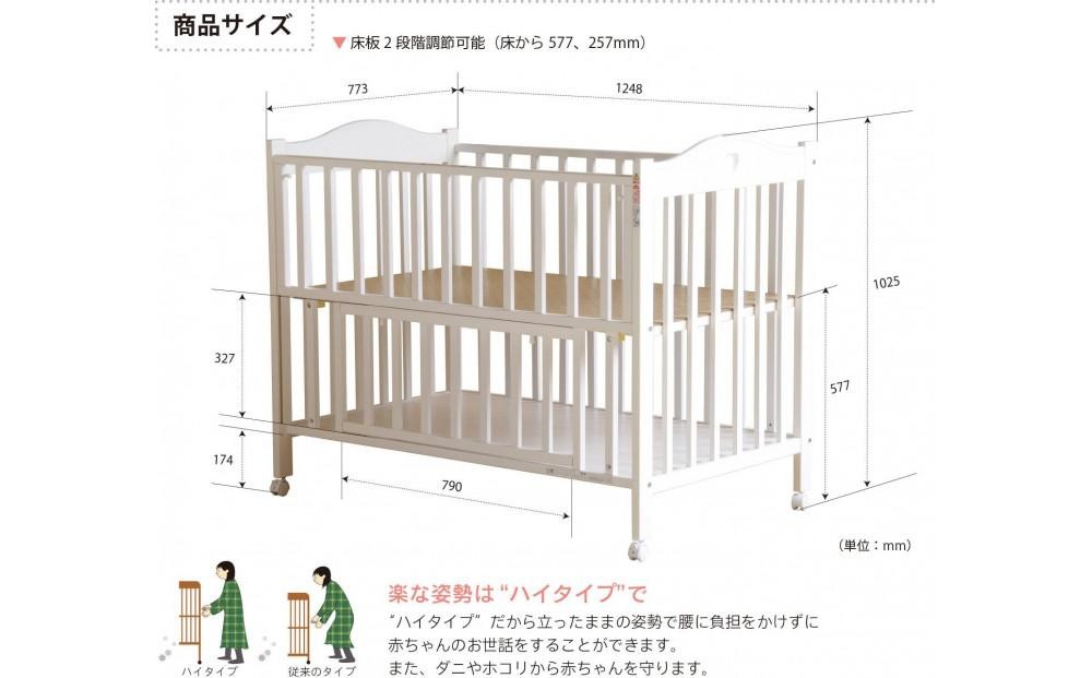 ベビーベッド「プロヴァンスWH」+「スターレットゴールド」ベビー布団7点セット