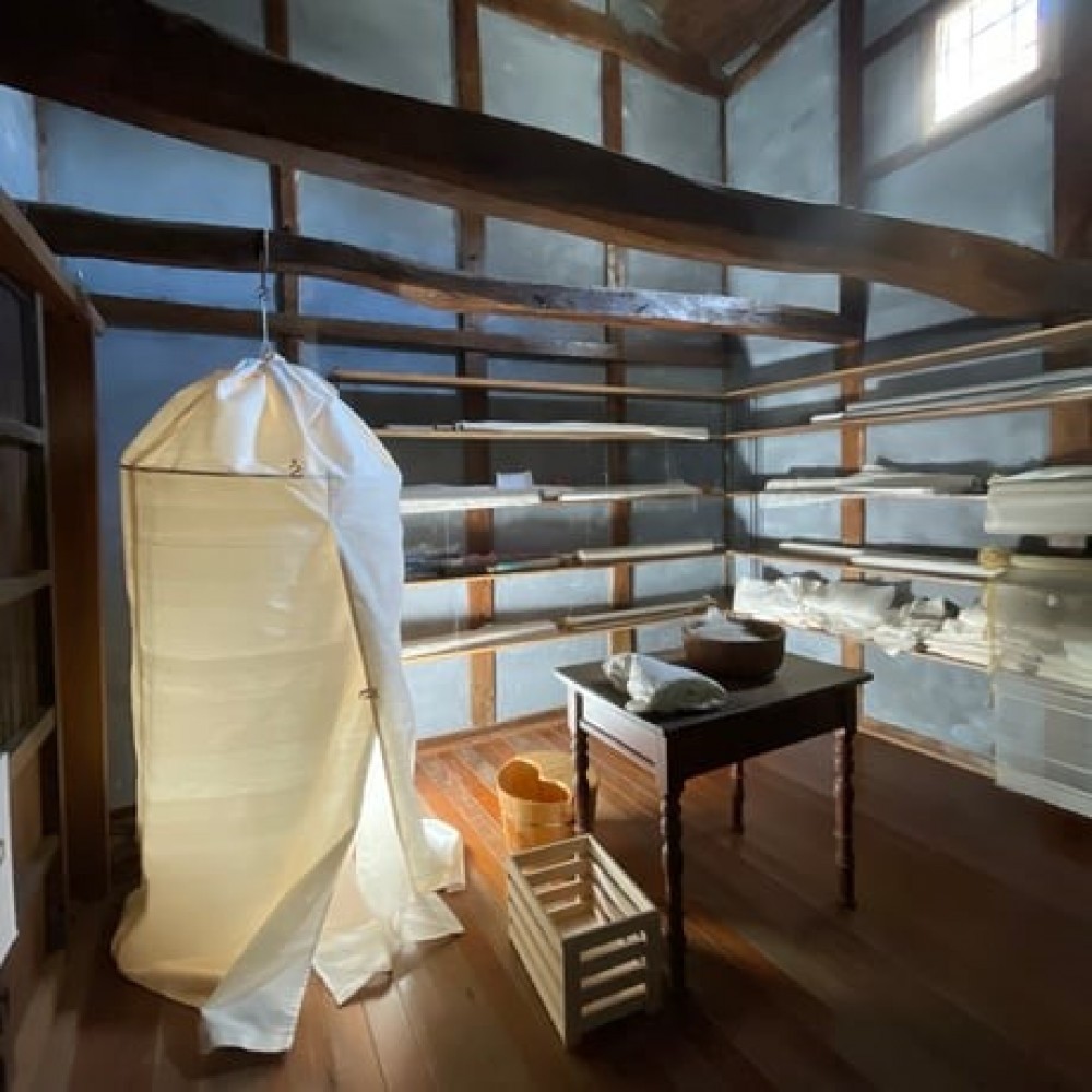 松井機業で織り上げたシルクを2枚重ねにしたテントの中でハーブを蒸し、ハーブの薬効成分を鼻や口、皮膚から吸収する美容健康法です。