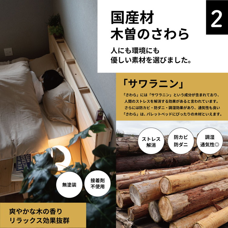 ヘッド付きパレットベッド 4枚セット 日本製 天然木 寝室 おしゃれ 富山県射水市