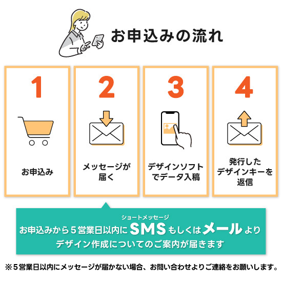 ※デザイン作成のご案内が届かない場合はお手数をおかけしますがお問い合わせよりご連絡をお願いします。