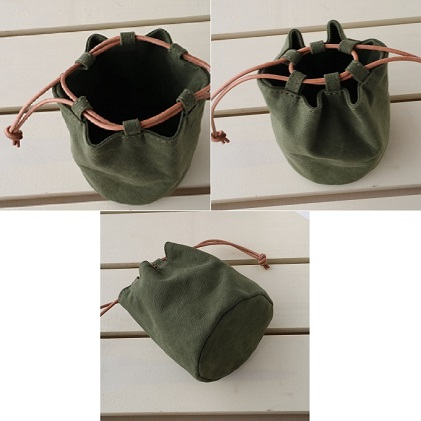 | 容量 | サイズ(約):高さ/15.5cm、横/10.5cm、革ひも/15cm(締めた時の付け根から先までの長さ、片方) 材質:ARMY DUCK BIO WASH(帆布)、牛ヌメ革(革ひも) ※お好きな一色をお選びください。 |