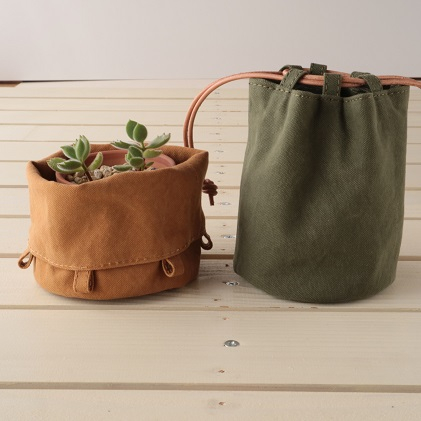 化粧ポーチ、コード類の整頓、お薬入れなど小物入れ、革ひも外してプランターポットカバー、倒れないように中に重りを入れればペン立てにも。