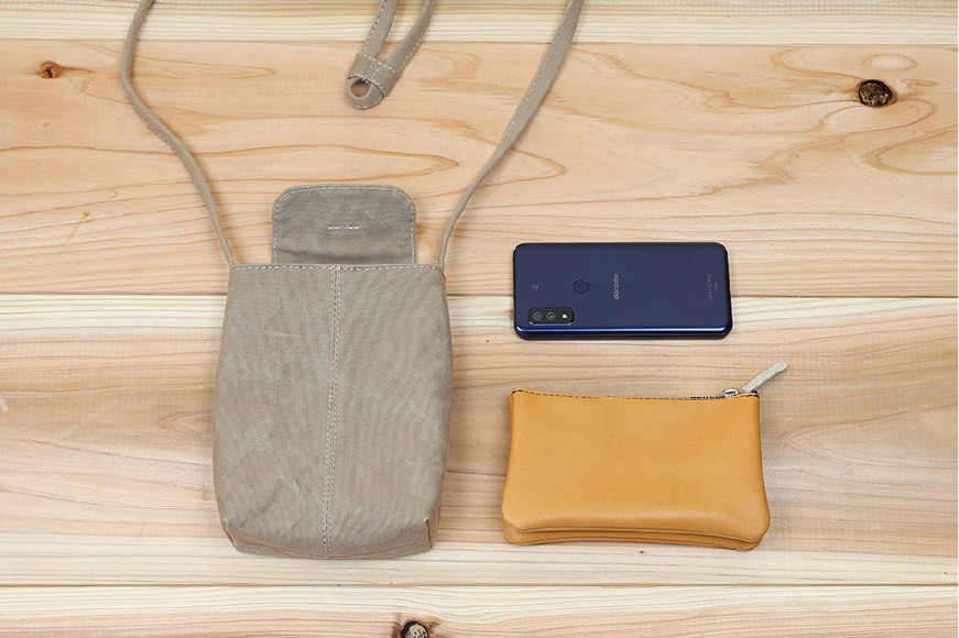 スマホ、ハンカチやテッシュなど最低限の物を入れられる大きさです。