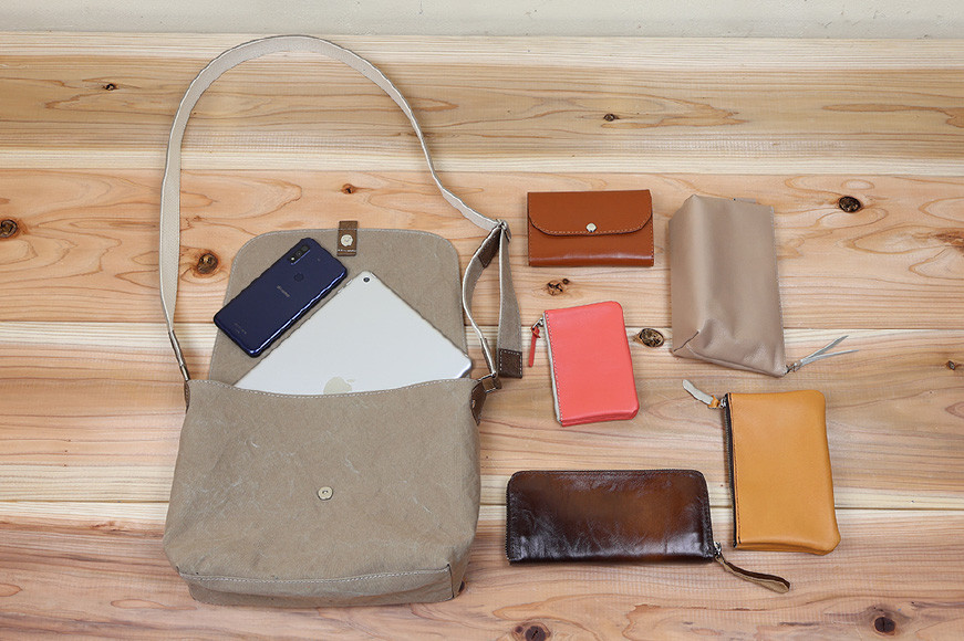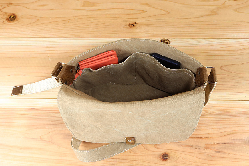 【グレーベージュ】メッセンジャーバッグ [アトリエSASSA 富山県 朝日町 34310328-gb] ショルダー バッグ 鞄 かばん カバン 帆布 革 おしゃれ 手作り シンプル レザー