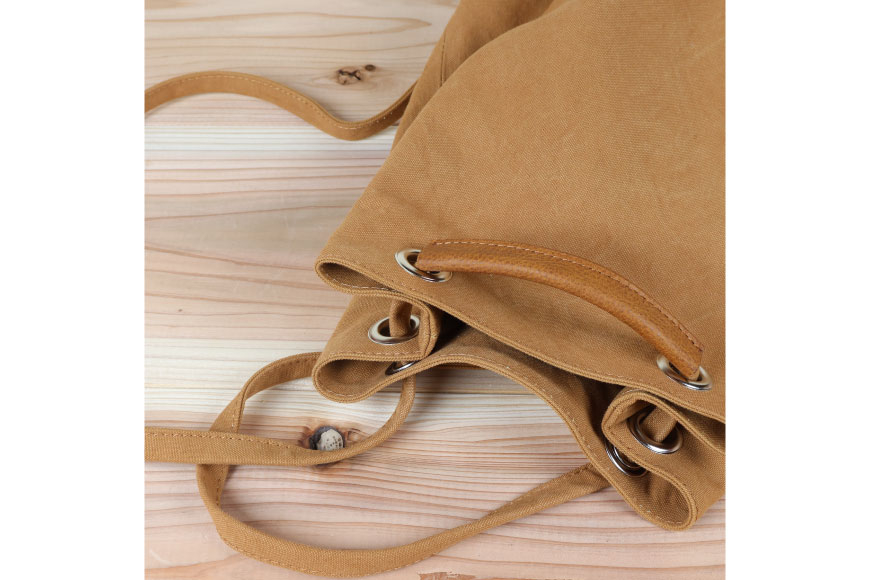 | 容量 | 【サイズ・仕様】 サイズ(約):ヨコ上部21cm 下部26cm×タテ38cm×マチ13cm、ショルダー片方 85cm 仕様:ARMY DUCK BIO WASH(帆布)、国産牛レザー(オイルヌメ) |