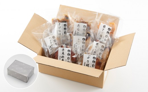 | 容量 | 天然ぶり照焼×2切 からすがれい煮付け×2切 さば味噌煮×2切 銀さけ塩焼×2切 シルバーみりん焼×2切 赤魚幽庵焼×2切 たらこ煮×2パック 銀だら西京焼×2切 |