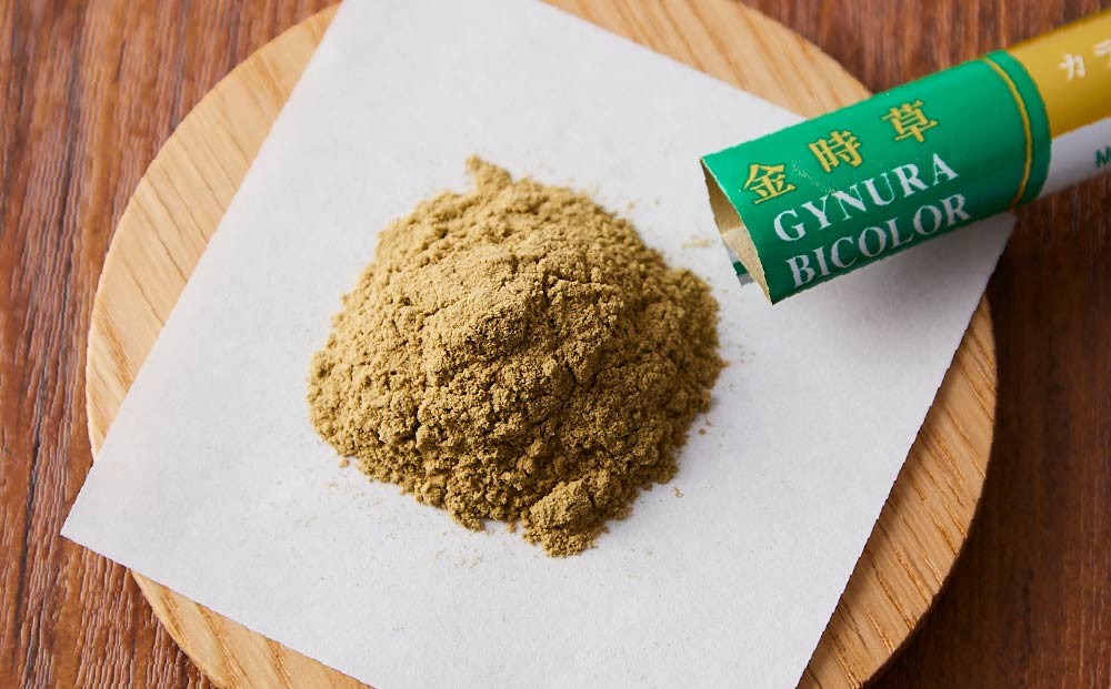 石川県で環境にやさしい農法により育てられた金時草(キンジソウ)を、乾燥粉末にして100%使用。