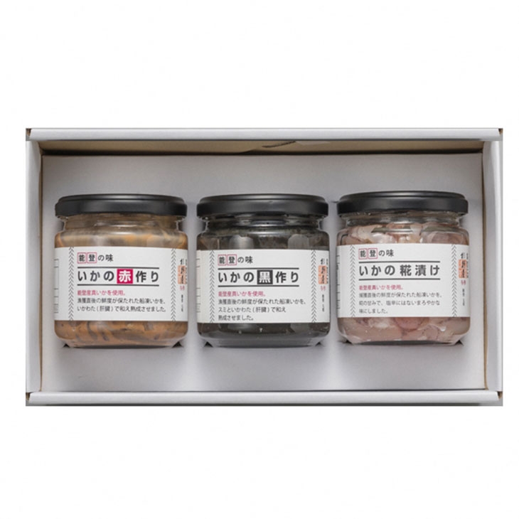 | 容量 | いかの赤作り 160g いかの黒作り 160g いかの糀漬け 160g |