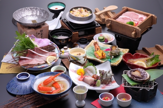 お食事は、能登の海の幸・山の幸を中心に、旬を感じていただける会席料理を心を込めてご用意しております。