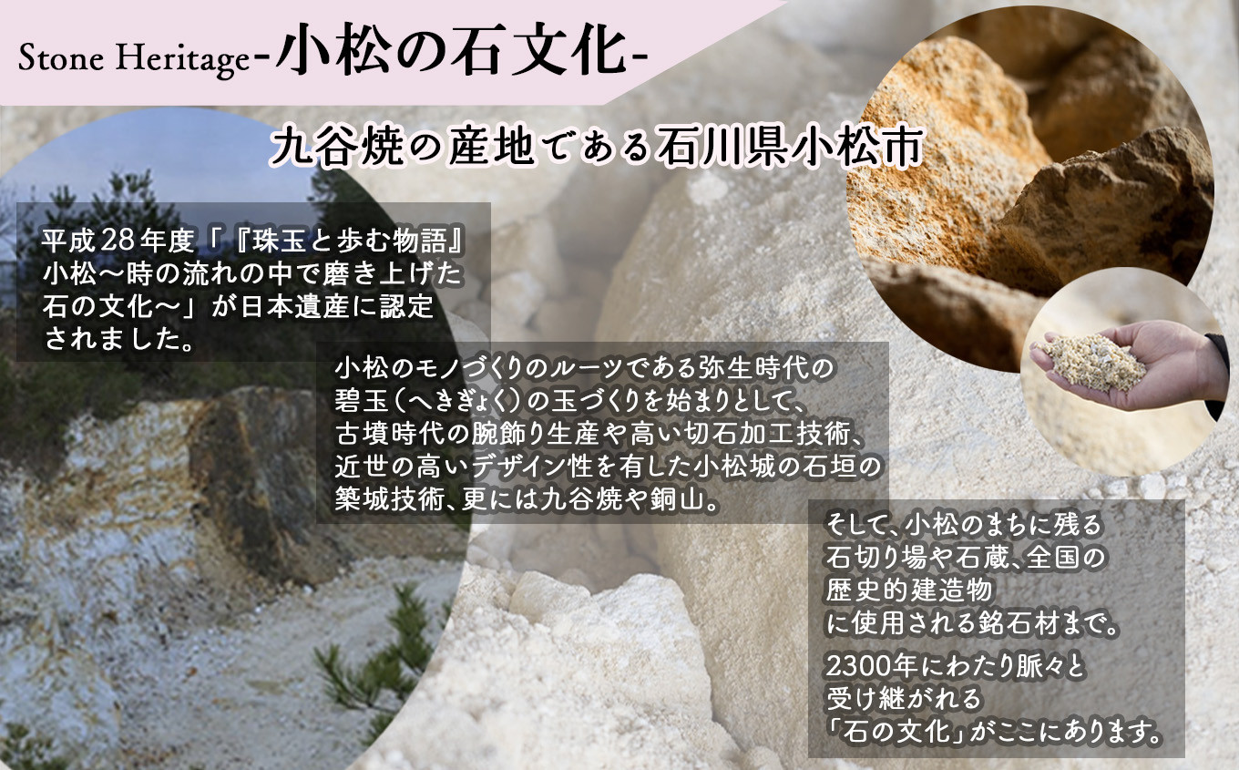 九谷焼の原料である「花坂陶石」に由来しています。HANASAKAの製品は、伝統的な九谷焼を支え続ける窯元の手により、一点々、手挽き轆轤で作られています。手に持ったときの心地よさや、口当たりの良さも特徴の一つ。お茶やコーヒーを楽しむだけでなく、デザートを盛り付ける器としてもおすすめです。 日々の生活に彩りを添える一品。あなたの大切な時間や瞬間を、より特別なものにしてくれることでしょう。お気に入りのカップで、一服のひと時を楽しんでください。