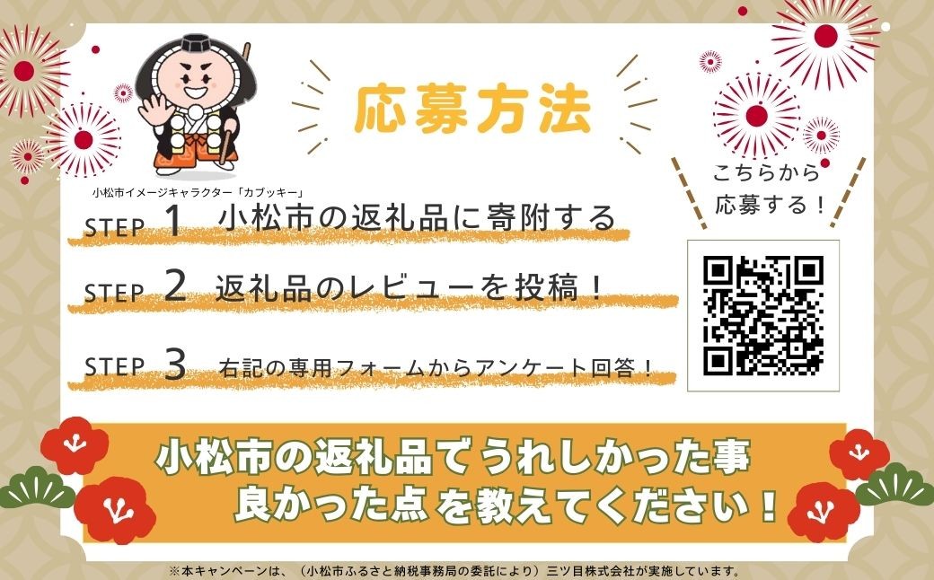※返礼品は「市外在住の方へのお礼」を目的に送付するもので、小松市にお住まいの方に送付することはできません。あらかじめご了承ください。