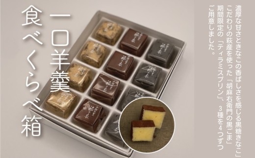 容量 | 雪花糖(干菓子)12個/一口羊羹3種(黒胡麻、黒糖、ティラミスプリン)各4個 計24個 |