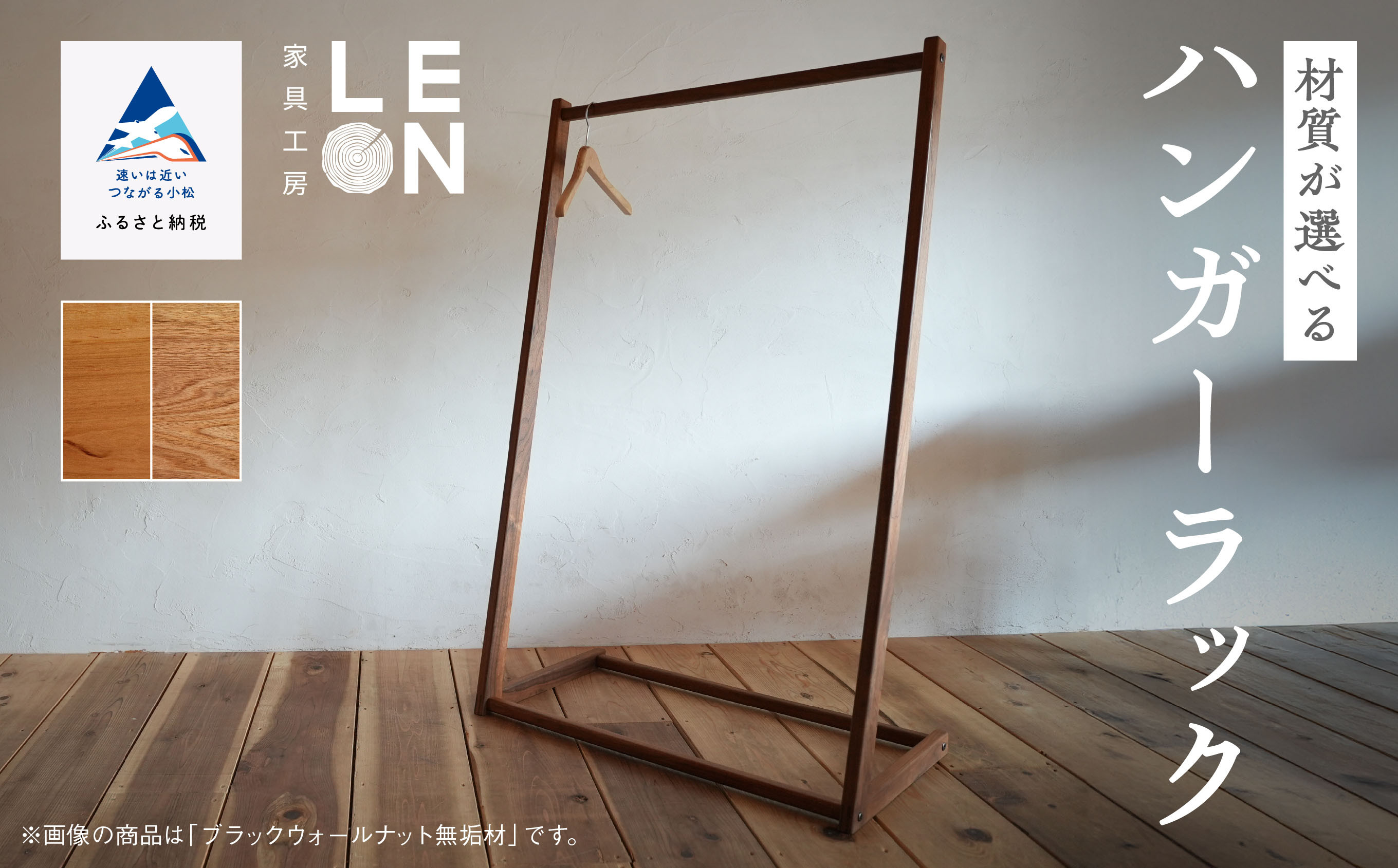 天然無垢材からつくる家具 インテリア 家具 収納《選べる2つの材質》無垢材ハンガーラック 石川県産桜無垢材/国産くるみ無垢材