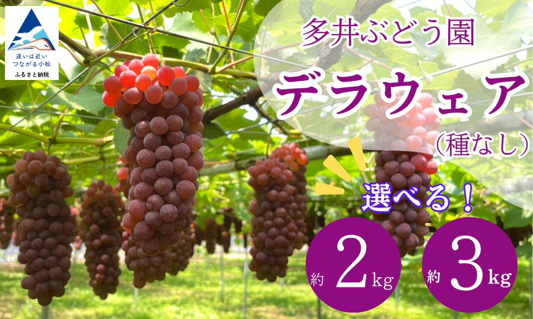 種なしで食べやすい。甘みと酸味の絶妙なバランスが特徴 【2026年 先行予約】ぶどう デラウェア (選べる 2kg 7房~8房/3kg10房~11房) 果物 ぶどう 葡萄 ふるさと納税 フルーツ 【多井ぶどう園】