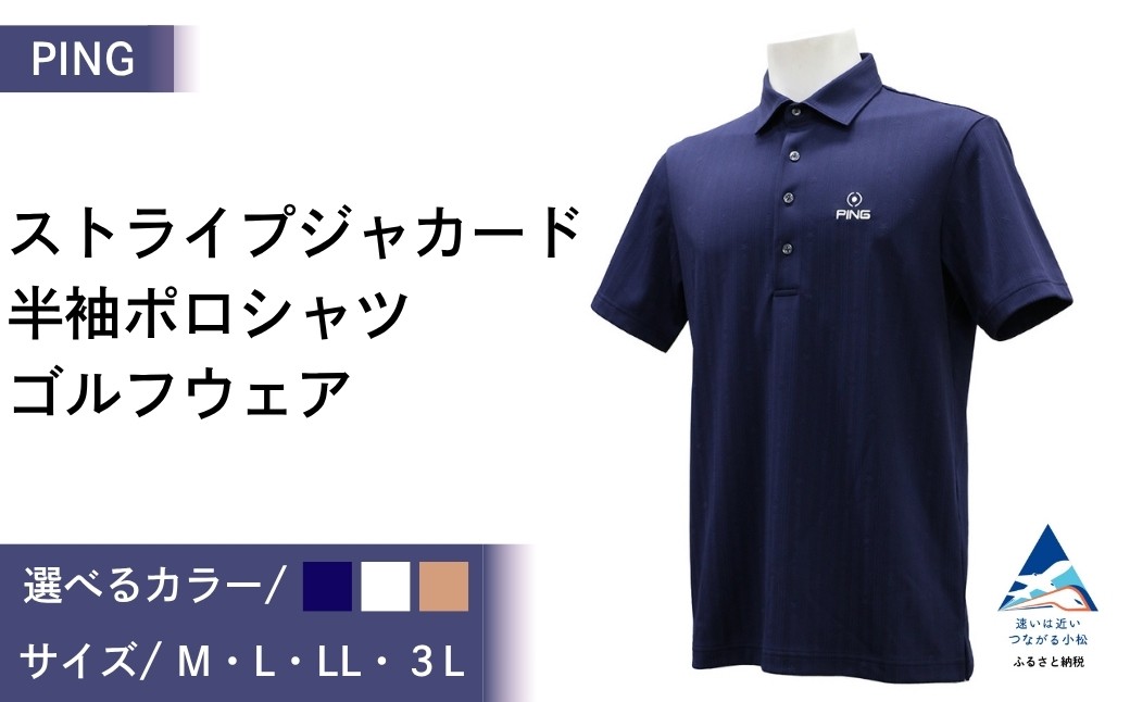 スポーツブランドらしい高機能素材を使用しつつもTSIらしい楽しさが全面にでた商品 PING ストライプジャカード半袖ポロシャツ ゴルフウェア ピンGOLF 621-6160307 選べる種類(ホワイト/ベージュ/ネイビー)