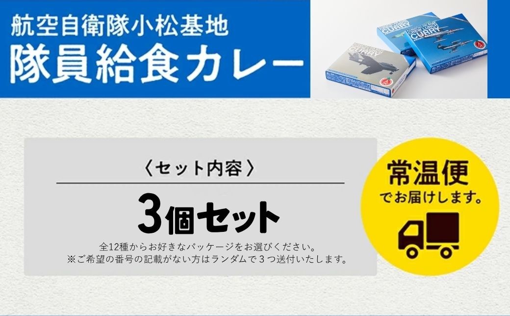 航空自衛隊 小松基地 隊員給食カレー 選べるパッケージ 3個セッ…