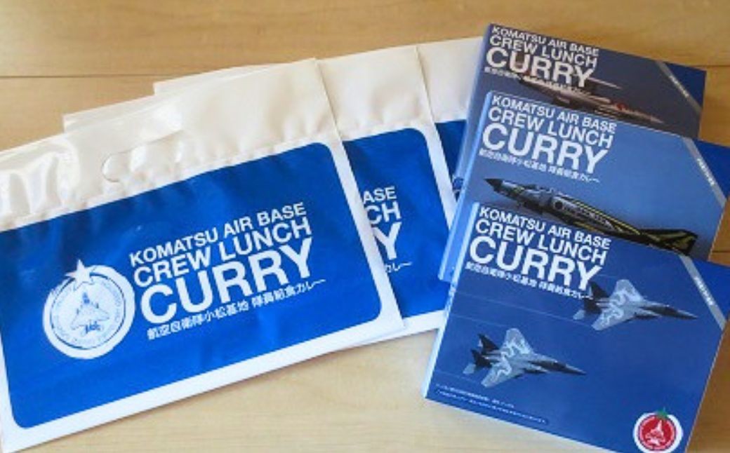 航空自衛隊小松基地創立50周年の2011年、基地内の隊員食堂で提供されていたカレーのレシピが公開され、NPO法人まちづくり小松が新たな地場産品化を目指し、2014年からレシピに基づいたレトルトカレーの製造に乗り出しました。