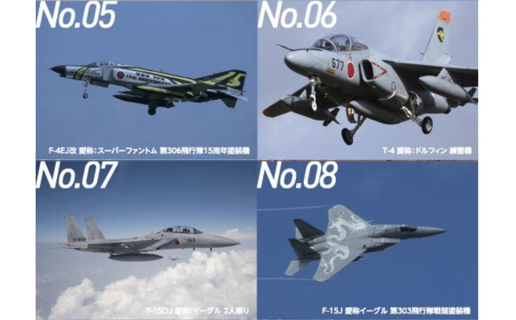 裏面にはパッケージごとに機体の説明、小松基地の歴史、業務紹介など、航空ファンにはたまらない貴重な情報が満載です。パッケージは全12種類、コンプリートすると航空機や小松基地の魅力も存分に楽しめます。