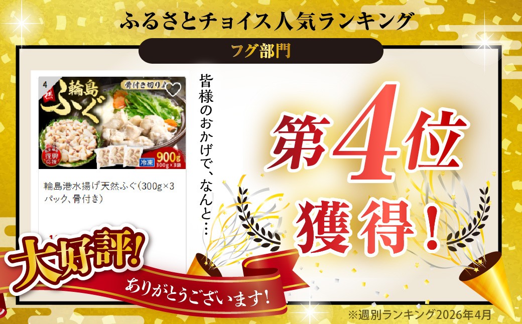 輪島港水揚げ天然ふぐ(300g×3パック、骨付き)