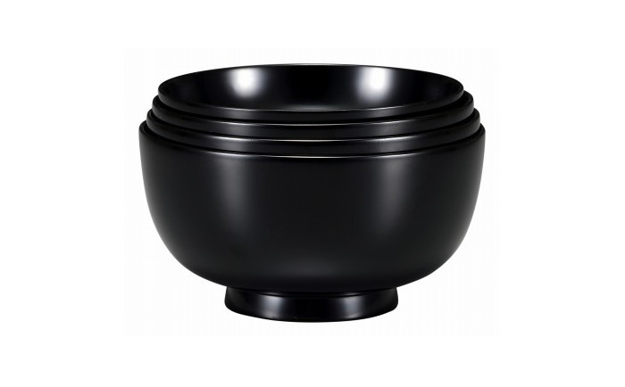 椀①(直径約12.7cm×高さ約6.7cm)、椀②(直径約12.2cm×高さ約5.7cm)、椀③(直径約11.8cm×高さ約5cm)、椀④(直径約11.2cm×高さ約4.1cm)の輪島塗の四つ椀です。